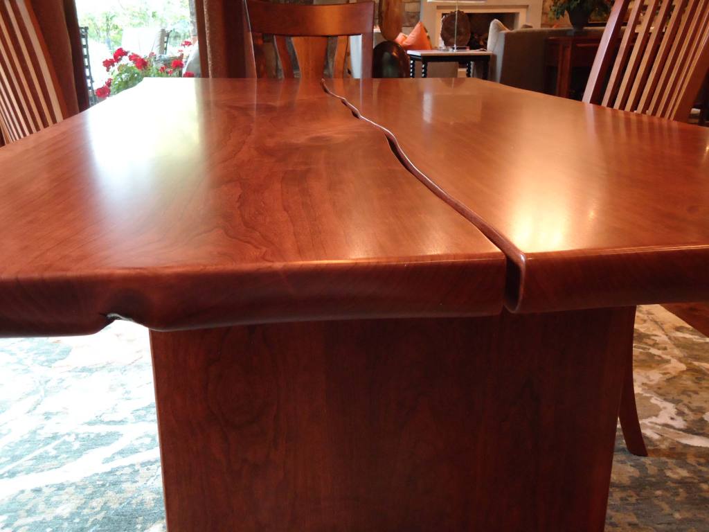 From rustic to victorian, and any style in between, we strive to match every detail to your personality and lifestyle. | Pick out a live edge slab and we can custom design and create your own one-of-a-kind masterpiece! | We welcome custom designers to challenge us to build creative and unique pieces such as this Kevazingo table with maple inlays and stainless steel accents. |